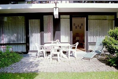 Von der Terrasse gelangt man direkt in die parkähnliche Grünanlage und hat zum Teil einen Blick auf den Predigtstuhl. Das Schlafzimmer besteht aus einem Doppelbett mit Federkernmatratzen und Lattenrosten, Nachttischchen, einem Kleiderschrank und einem Schreibtisch. Das zweite Schlafzimmer verfügt über ein Etagenbett, das ebenfalls von Erwachsenen genutzt werden kann. Der separate Küchenraum verfügt über eine Einbauküche und ist mit Kaffeemaschine, Toaster, Mikrowellenherd, Wasserkocher und allen gebräuchlichen Haushaltsutensilien ausgestattet.